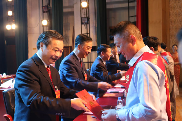 集团乐玩lewin|官网领导给劳动模范颁奖。(胡婷 摄)