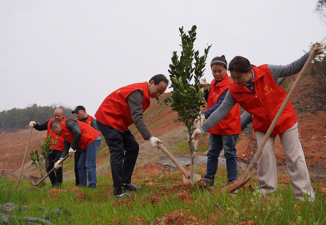 志愿者们个个热情高涨,带着铁锹、水桶、手套等工具来到活动现场。力气大的负责挖坑、填土,力气小的负责种树、浇水,大家分工合作、互相配合,种下一棵棵绿色的希望。活动现场到处回荡着大家的欢声笑语,一棵棵绿色的树苗拂动在春风里,一个个灿烂的笑容浮现在志愿者脸上。