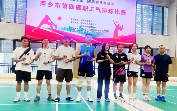 为庆祝中华全国总工会成立100周年,4月19日至20日,“中国梦・劳动美”萍乡市第四届职工气排球赛在市工人文化宫综合训练馆举行。萍矿代表队获得男子组比赛三等奖。